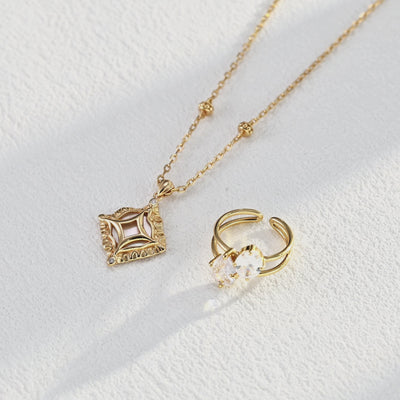 Mother-of-Pearl & Zircon Pendant Necklace - Vintage Serenity in French Elegance
