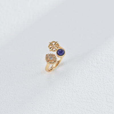 Precious Dreams Ring- Natural Pearl,Lapis Lazuli,Cubic Zirconia